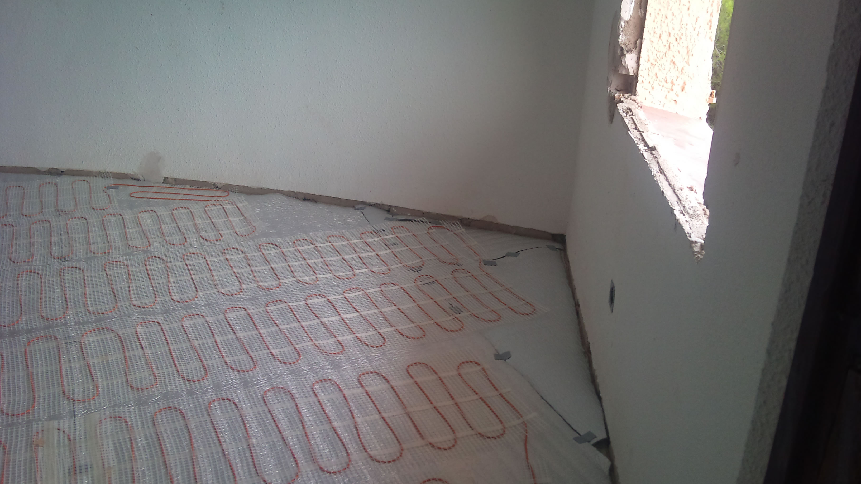 Verlegte Heizmatten auf Isoliermaterial - Gesamte Höhe etwa 1 cm